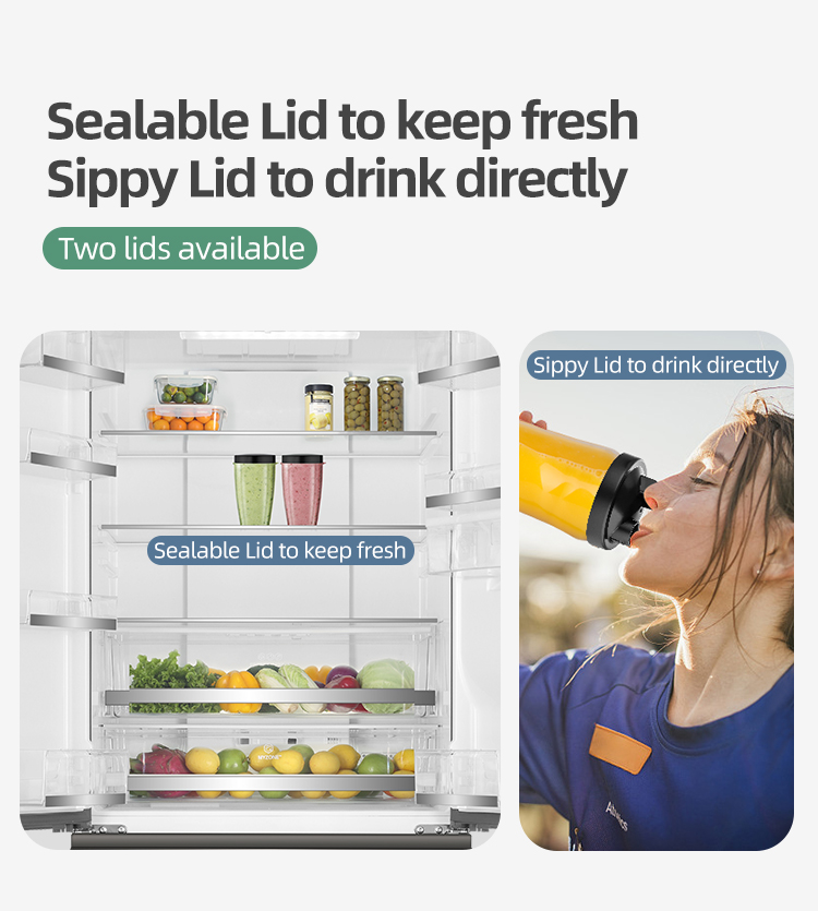 Mixen und trinken Sie aus derselben Tasse, mit optionalem Trinkdeckel, ideal für Smoothies unterwegs